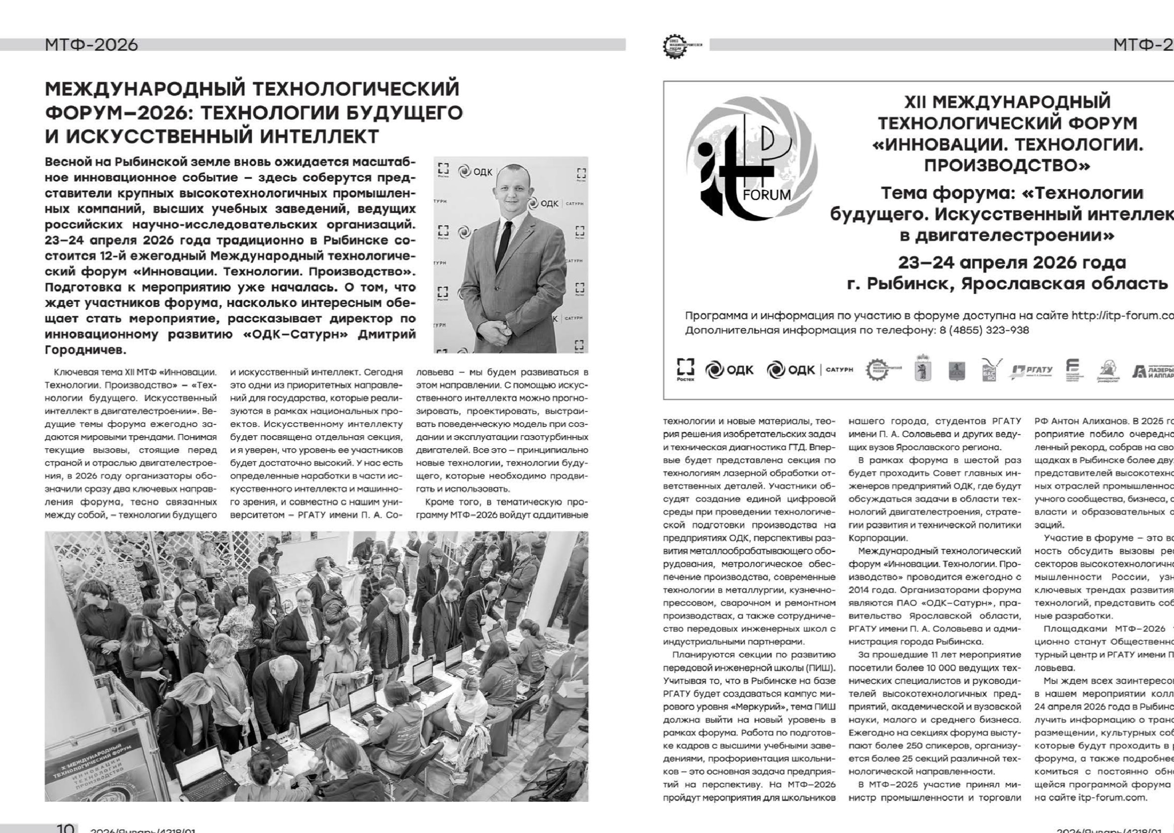 Ведущие темы форума ежегодно задаются мировыми трендами. Понимая текущие вызовы, стоящие перед страной и отраслью двигателестроения, в 2026 году организаторы обозначили сразу два ключевых направления форума, тесно связанных между собой, – технологии будущего и искусственный интеллект. Сегодня это одни из приоритетных направлений для государства, которые реализуются в рамках национальных проектов. Искусственному интеллекту будет посвящена отдельная секция, и я уверен, что уровень ее участников будет достаточно высокий. У нас есть определенные наработки в части искусственного интеллекта и машинного зрения и совместно с нашим университетом РГАТУ имени П.А. Соловьева - мы будем развиваться в этом направлении. С помощью искусственного интеллекта можно прогнозировать, проектировать, выстраивать поведенческую модель при создании и эксплуатации газотурбинных двигателей. Все это принципиально новые технологии, технологии будущего, которые необходимо продвигать и использовать.